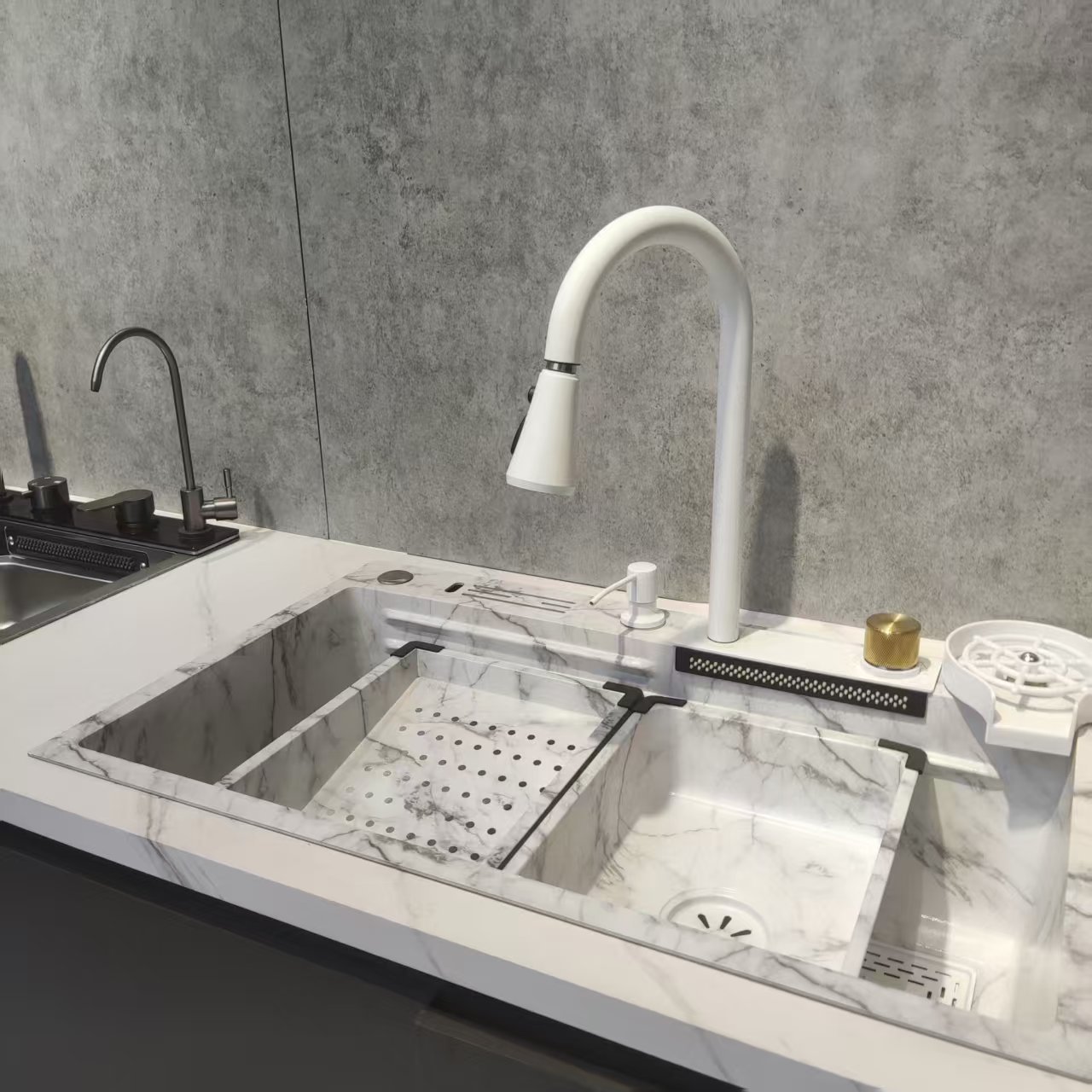 | سینک آشپزخانه دو لگنه با آبچکان | 800×500×220mm | ناحیه ظروف با زهکشی سریع |